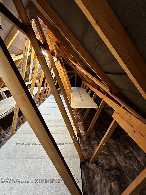 4 bedroom detached house, had raised flooring installed to the main loft space, full loft insulation, new insulated hatch and loft ladders installed, plus some additional shelving.