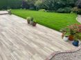 I had one large patio along full length of my property and a smaller square patio to the rear of garden. Both in porcelain tiles. A new raised flower bed with sleepers to rear of garden and steps with porcelain tiles up to the grass area and finished with turf.