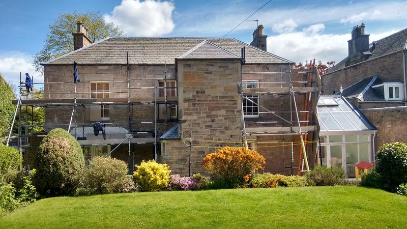 Edinburgh Stonemasons completed major repairs and renovations to the exterior of our large B-listed house in South Edinburgh over the summer of 2022. We appointed them as the prime contractor, for stonework repairs and repointing, and also to engage sub-contractors for scaffolding, masonry painting and redecoration, and for some specialist harling repair work, as well as repairs, painting and mastic sealing of 49 timber sash and case windows.
